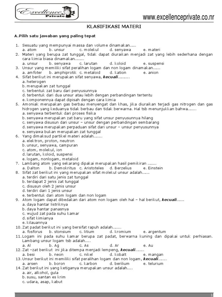 Berikut ini adalah soal soal materi klasifikasi makhluk hidup untuk siswa smp kelas vii. Sedangkan materi adalah benda maupun bukan benda yang memiliki massa dan dapat mengisi atau menempati suatu ruang. Contoh soal essay materi dan perubahannya beserta . 20201105 soal essay microsoft word dan jawabannya nov 05 2020 soal. Berikut pembahasan latihan soal ulangan harian ilmu pengetahuan alam (ipa) kelas 7 smp bab 3 tentang klasifikasi materi dan perubahannya.
